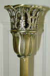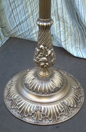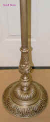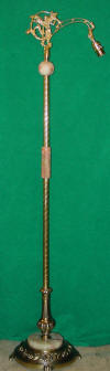 Double Cluster Floor Lamp with 2 Pull-Chain Sockets, 63" tall. Satin Brass Cluster is adjustable - can be raised 3 more inches. Embossed Ivy brass tubing can have antique finish applied as shown below. 6" Onyx break above base, Cast Metal "Leaf" Column closely matches design in heavy 13" Cast Metal Base. Comes with 16-foot brown cord.