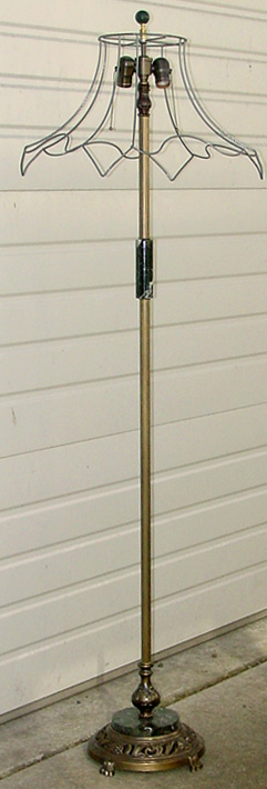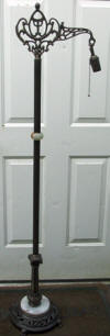 Double Cluster Floor Lamp with 2 Pull-Chain Sockets, 64" tall. All components antique finish. Green Marble Breaks and Finial, Cast Metal Leaf Break, Filigree Base