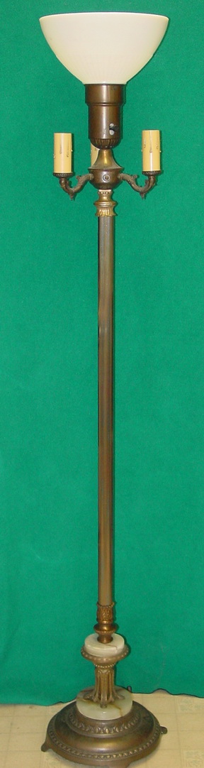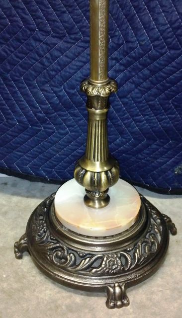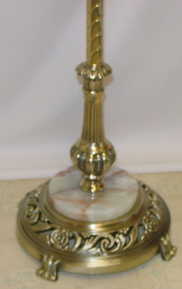 cast metal base and column, Onyx center and bottom breaks, antique finish.