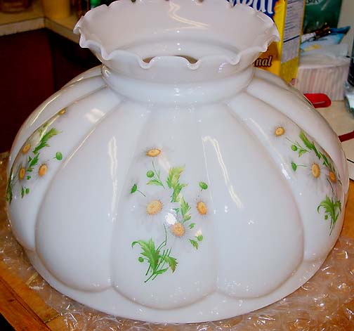 14-inch Glossy Opal Melon Shade with Daisies decals