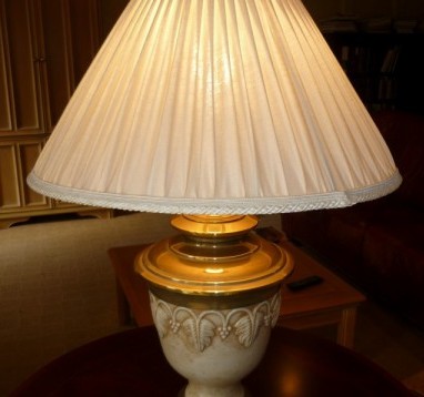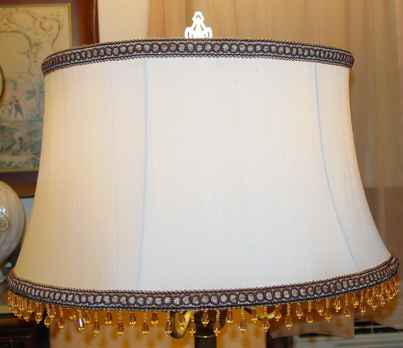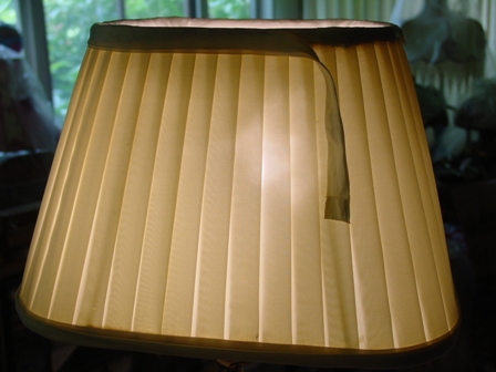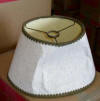Call for estimate on complete lampshade restoration and replacement. Even if you don't have the old frame, I have over 3,000 lampshade frames in stock in almost any size or style you might need. Most lampshades never go out of style -- they just wear out from years of service. Heat from too hot a light bulb tends to dry out the lining and it becomes crumbly and disintegrates. Lampshade Repair - We can replace worn-out linings with new fabric that will last a long time! To make your lampshades last longer, be sure there is at least 3 inch clearance between the fabric and the light bulb.