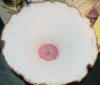 Silk Charmeuse, dyed same color as original shade, with hand-painted flowers, lined, and trimmed with custom-dyed scroll braid