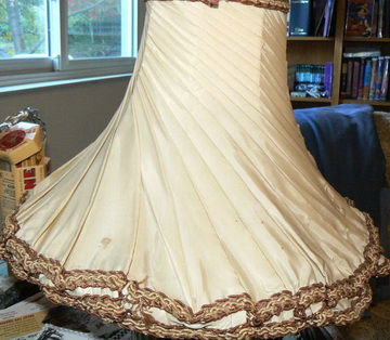 re-covered with custom-dyed "bouquet" Silk Jacquard soft pleats and self-fabric bias trim