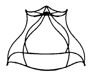Prices shown are for the frame only - finished shade not included. Shelly (Fan) $35 3 scallops on each side of top. 9" x 18" uneven 4-panel bottom, 11" high. Special 'rising sun' piece, curved side ribs, washer as shown in drawing. (also comes in Mini Frame version) |