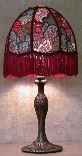 A larger frame of this same style can be made for you. (see "Little Old Lady" frame.) Cost may be higher, depending on materials used and your choice of bead or fabric fringe. Washer-top or Uno frame for bridge lamp available).