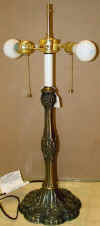 #9009 Antique brass finish cast metal double-cluster lamp $189 (22" to top of finial), 7-1/2" base