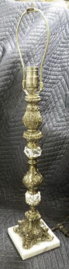 Right: #9014 Satin Brass Cast Metal, complete lamp $70