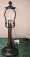 Tiffany style cast metal, antique brass finish, 3-way turn knob switch, Base diameter 8", 18" tall to top of socket.