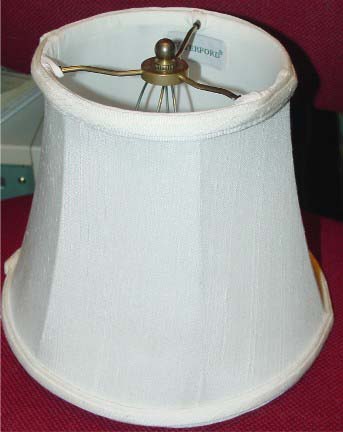 Call for estimate on complete lampshade restoration and replacement. Even if you don't have the old frame, I have over 3,000 lampshade frames in stock in almost any size or style you might need. Most lampshades never go out of style -- they just wear out from years of service. Heat from too hot a light bulb tends to dry out the lining and it becomes crumbly and disintegrates. We can replace worn-out linings with new fabric that will last a long time! To make your lampshades last longer, be sure there is at least 3 inch clearance between the fabric and the light bulb.